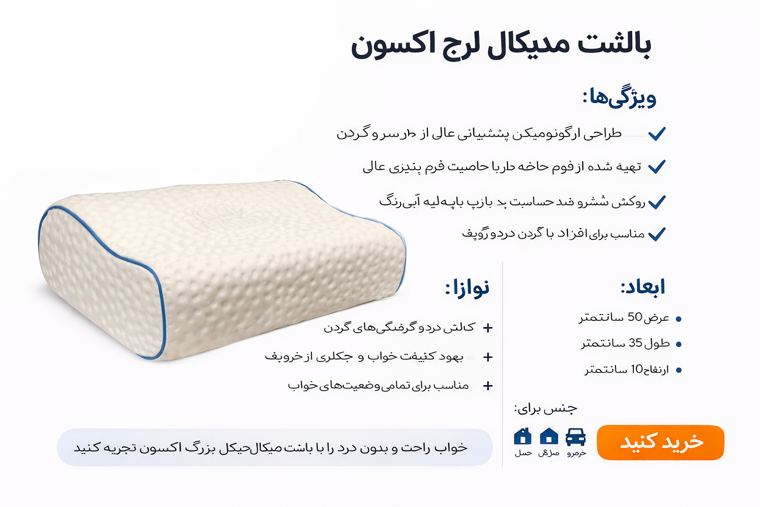 بالشت موجدار مموری فوم اکسون مدل مدیکال لارج/نرم