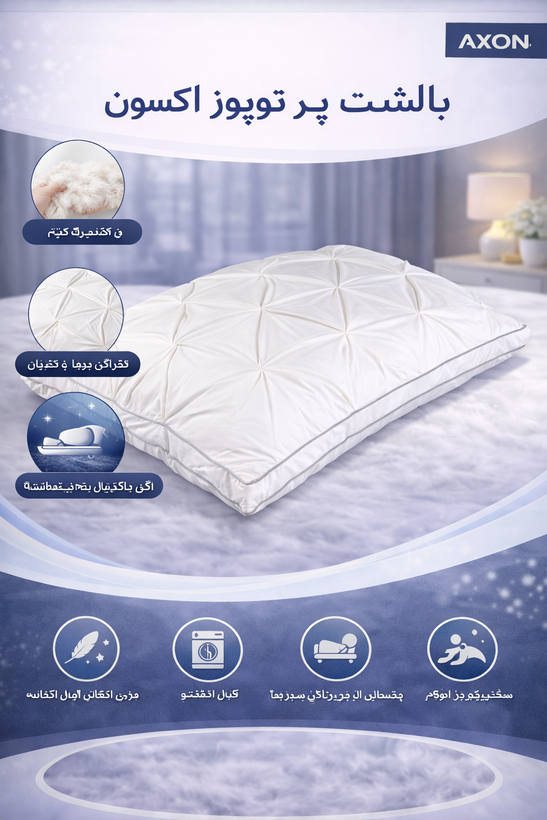 بالش پر غاز اکسون مدل Topoz، بهترین انتخاب برای خواب راحت و طبی. خرید آنلاین بالش پر غاز با کیفیت عالی و قیمت مناسب. ارسال سریع و ضمانت کیفیت!
