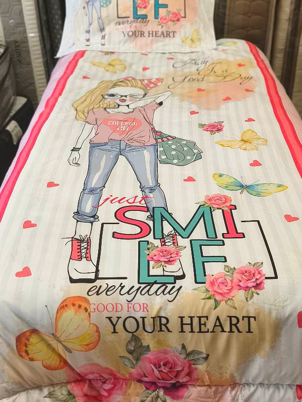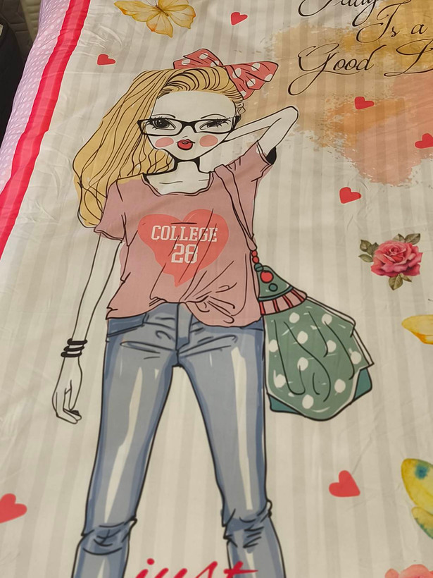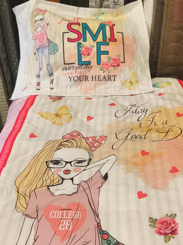 پارچه رویه لحاف چاپ دیجیتال پنلی از جنس الیاف میکروفایبر . پارچه زیره لحاف و کشدوز الوان 100% پنبه . روبالشی کالیته ای میکروفایبر از طرح رویه. سرویس 3 تکه شامل : لحاف یکنفره سایز 220*160 یکعدد کشدوز 200*90 یکعدد روبالشی کتیبه دار 50*70 یکعدد