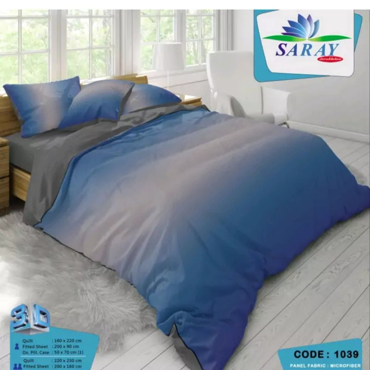 پارچه رویه لحاف چاپ دیجیتال پنلی از جنس الیاف میکروفایبر . پارچه زیره لحاف و کشدوز الوان 100% پنبه . روبالشی کالیته ای میکروفایبر از طرح رویه. سرویس 3 تکه شامل : لحاف یکنفره سایز 220*160 یکعدد کشدوز 200*90 یکعدد روبالشی کتیبه دار 50*70 یکعدد